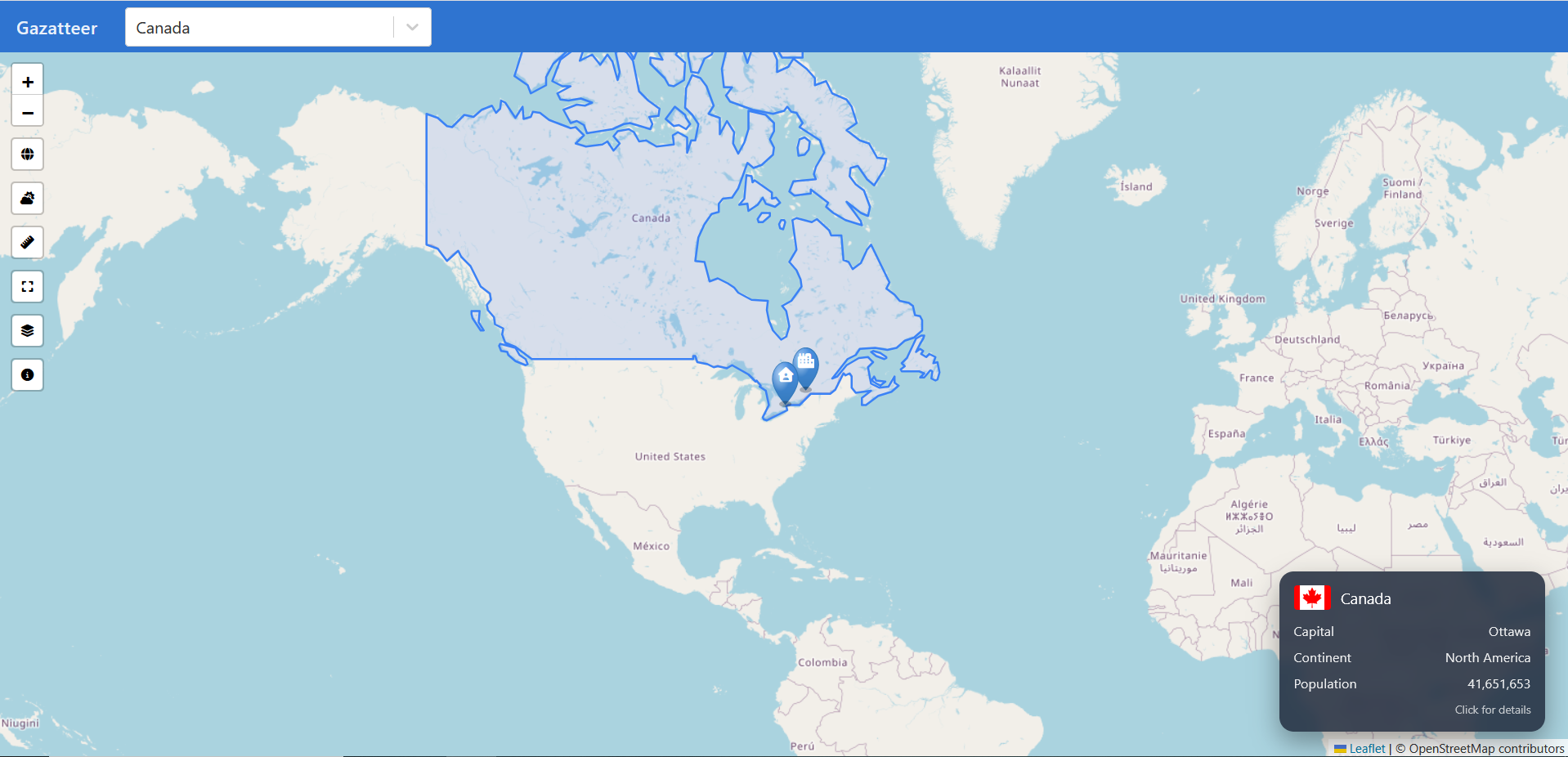 Gazetteer is an interactive geospatial web application that allows users to explore countries worldwide and view real-time geographic, demographic, and weather data.